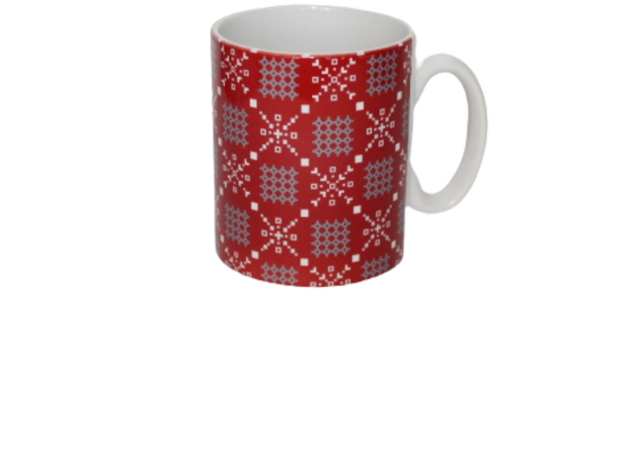 Mae'r dyluniad wedi'i argraffu fel dyluniad cofleidiol a bydd gofod gwyn lle mae'r handlen fel y mae gyda mwg wedi'i argraffu.