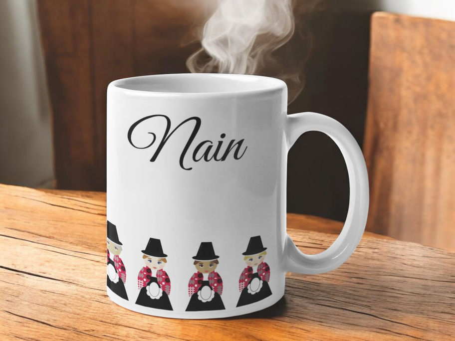Here we have our New signature range of Welsh Tapestry Print with welsh lady design mugs available in a selection of names these are 10 oz mugs and are designed in and printed in Wales